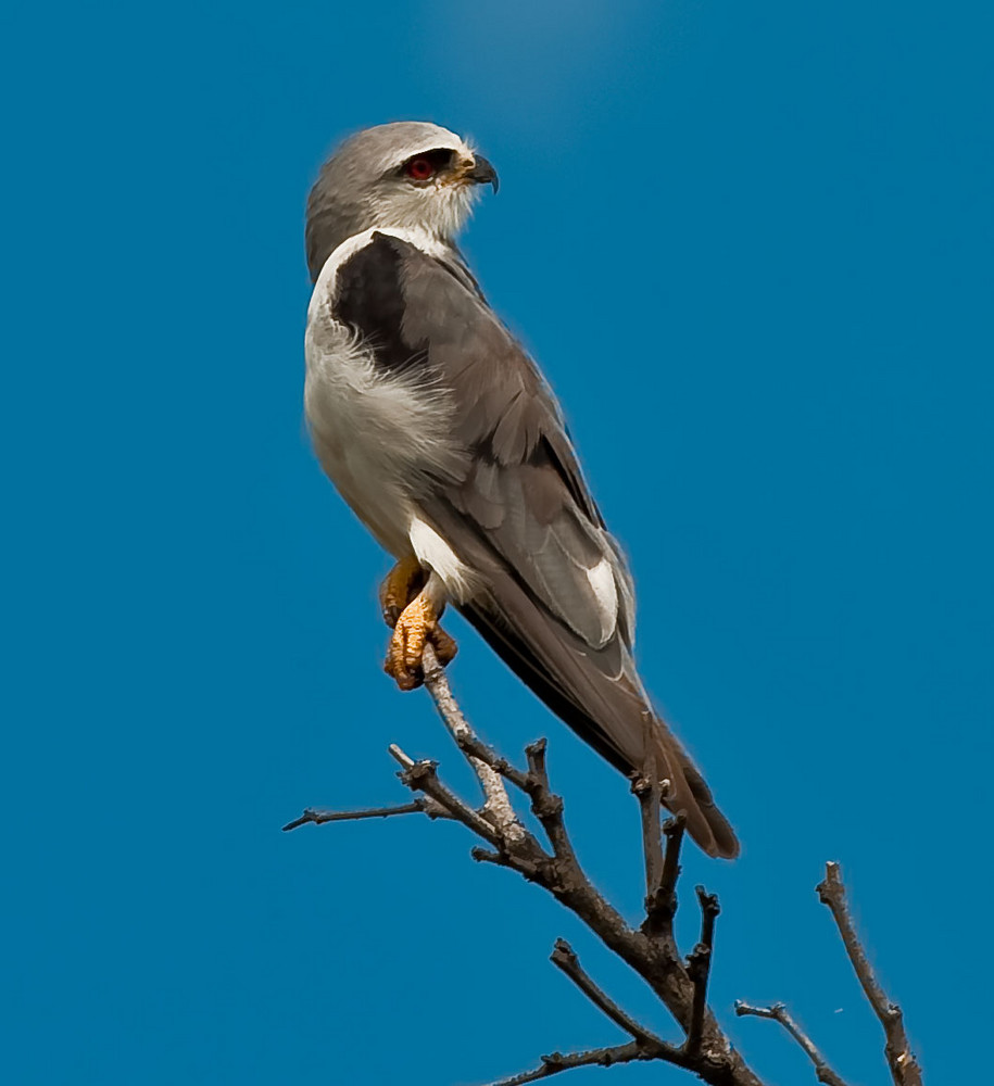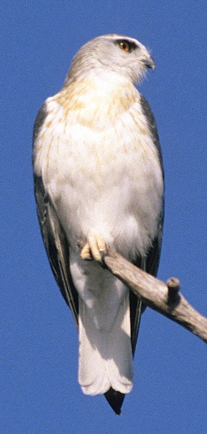A Blackshouldered Kite is holding something for lunch in its beak. [Chobe NP, Botswana]