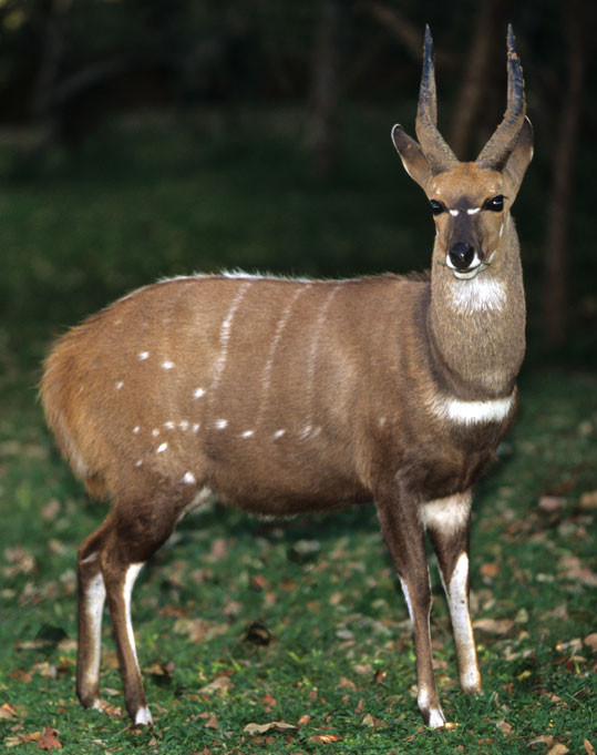 Juvenile male Bushbuck in the woodlands. Note the short horns. [Sabi Sabi Marine Camp, South Africa].