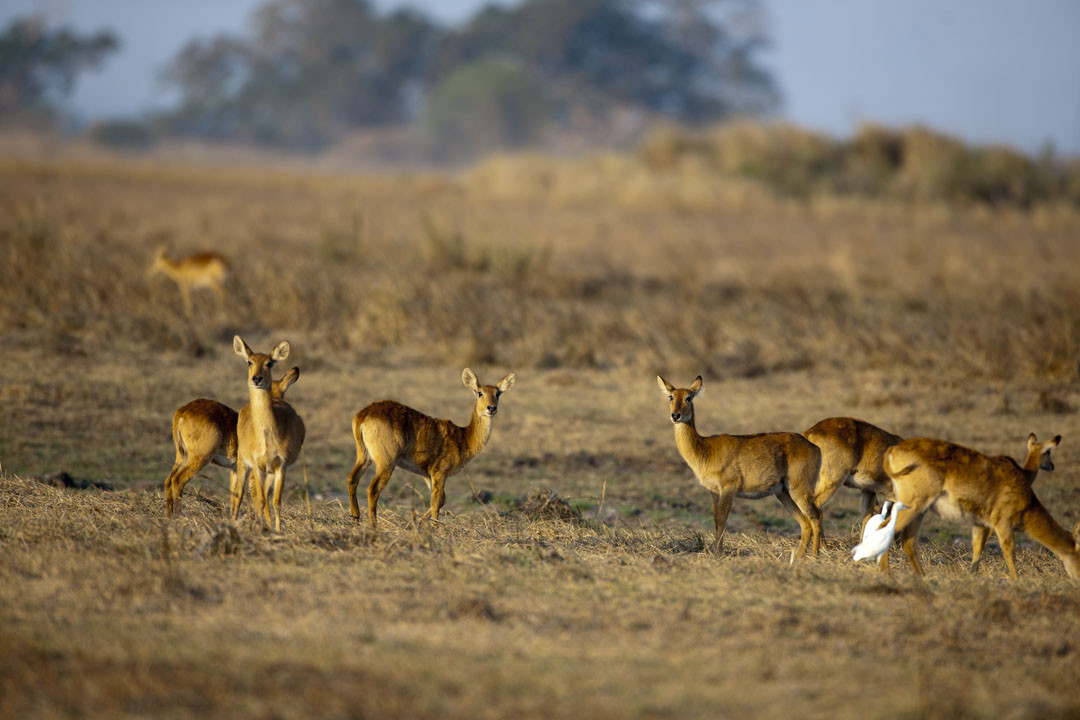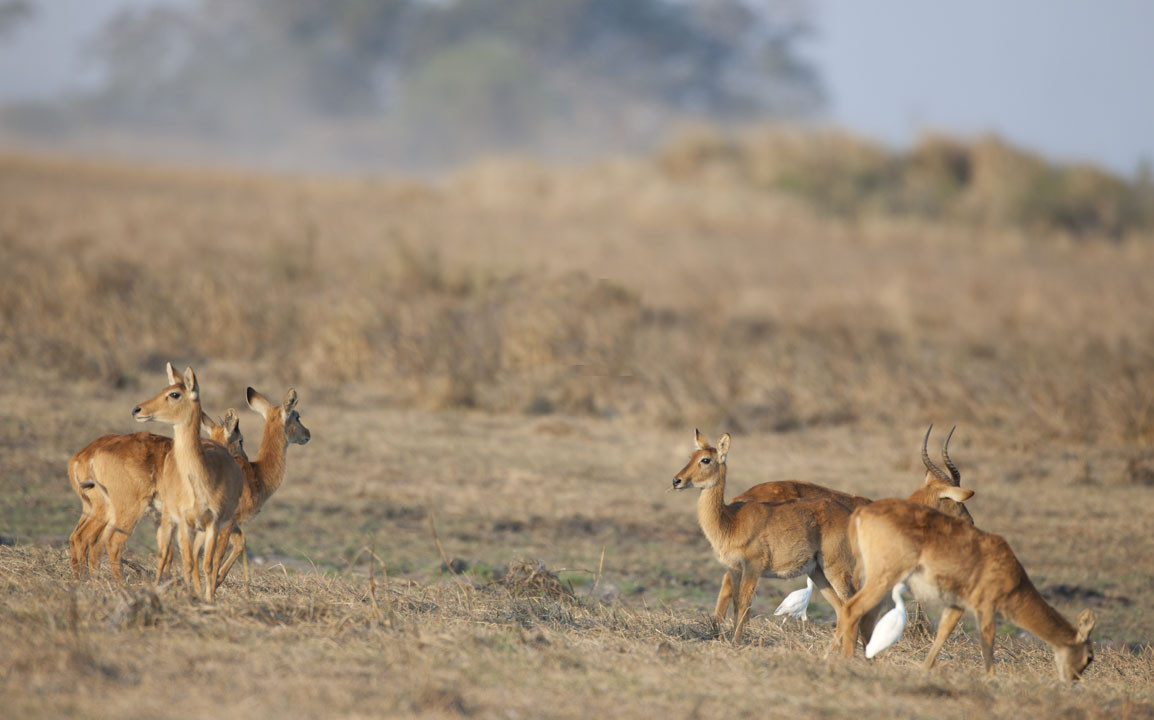 A Puku buck with his family of does--early morning.They are sometimes called 'Kob'. [S. Luangwa NP, Zambia].