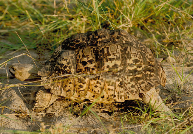 This Leopard Tortoise was half again larger in diameter than a dinner plate. [Botswana].