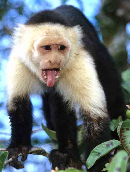 A White-Faced Chapuchin Monkey is a handsome little fellow, but has a very nasty disposition. [Costa Rica].