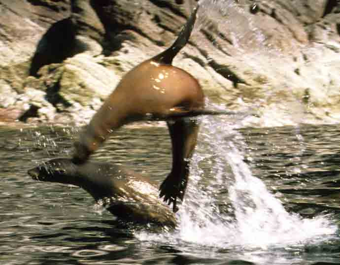 A second young adult Sea Lioness joined in the acrobatic exhibition. [Sea of Cortez, Mexico].